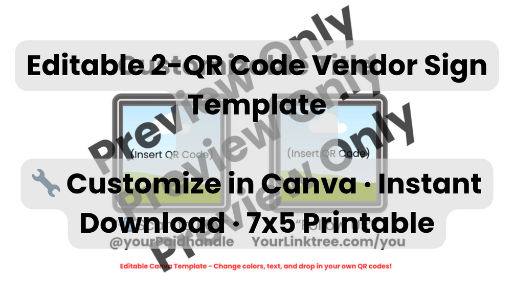Editable 2-QR Code Vendor Sign β Canva Template for Payment & Linktree | Small Business Display | 7x5 Printable